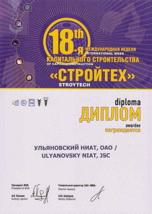 PC «Ulyanovski NIAT» Throughout his work actively participates in specialized exhibitions, conferences and other events related to the submission of their products, technologies and equipment.